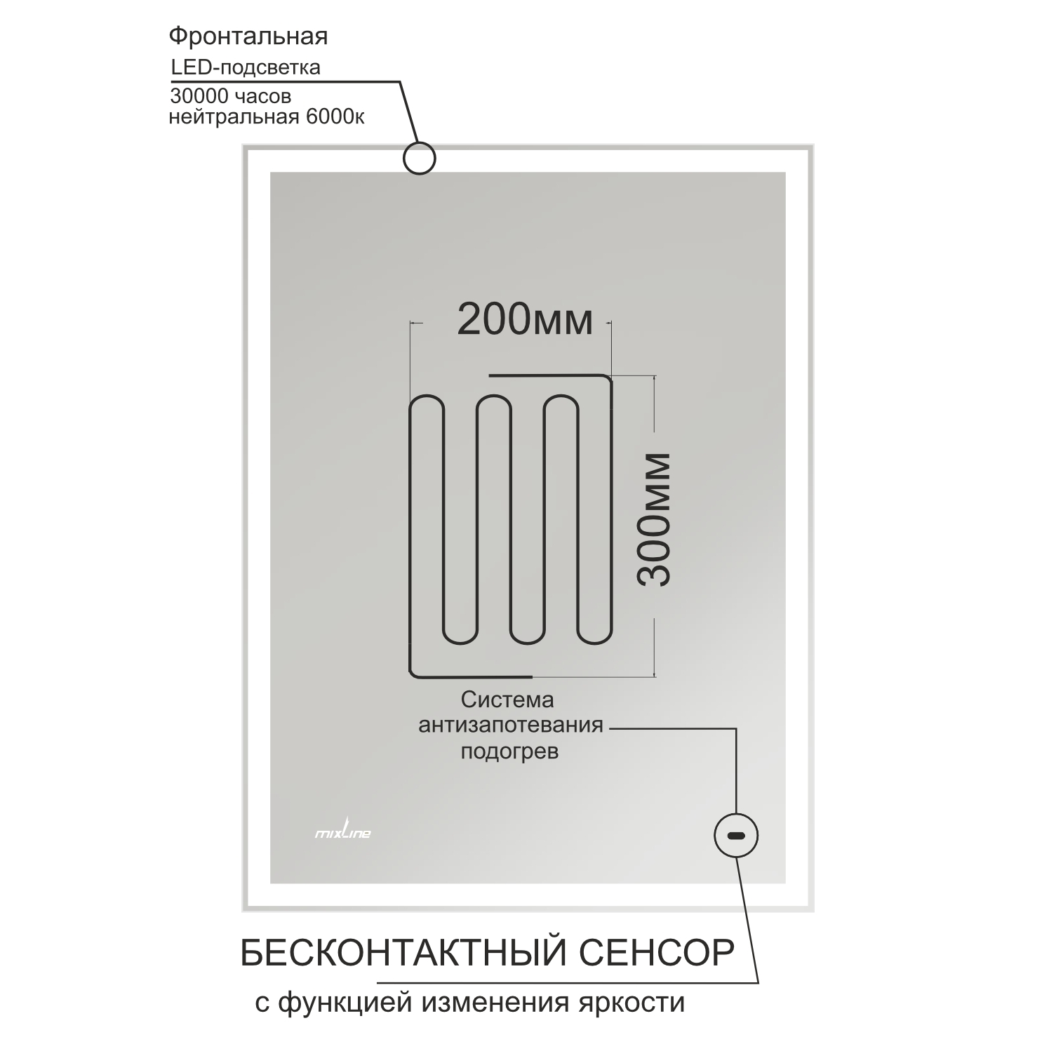 Зеркало MIXLINE "Велес-2" 600*800 (ШВ) бесконтактный сенсор, светодиодная подсветка+подогрев